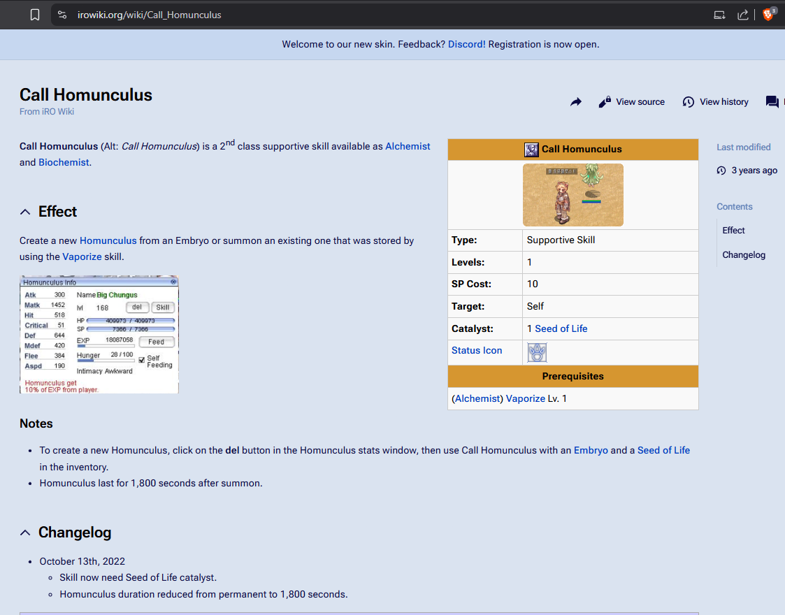 No se si es un bug o el funcionamiento oficial actualizado, Call homunculus me pide seed of life para poder llamar a mi homu, sin embargo en la descripcion no lo requiere