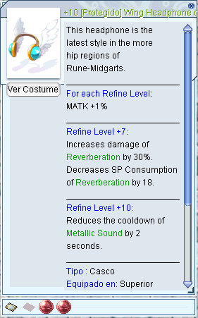 Este item al parecer no esta dando el bonus de refinado+10 de reducir cooldown, la skill se supone que tiene 2.5 segundos de cooldown, pero con y sin gorro es el mismo tiempo de espera.