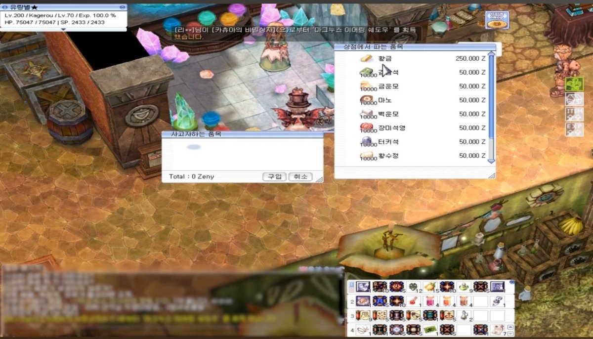 2. buenaas Karas, gracias por contestarme, en Kro tambien existe el paramarket y el npc que vende los gold, aunque es algo mas caro (50k mas), ambos son metodos oficiales del ragnarok coreano, porque uno lleva un precio distinto al otro? no tengo idea, no se que paso por alla el 2019 en kro, aclaro esto porque sé que el rathena lleva parametros muy distintos a lo que el servidor Coreano lleva. adjuntare pruebas como siempre a lo que menciono. si es que lo pido con urgencia es por la misma que al no haber un flujo grande de items pues este que es aun mas escaso de obtener se complica mucho para el que desee hacerse un Rune Knight, los coreanos entendieron la problematica rapidamente al cambiar el efecto de "lux anima" y la solucion fue el NPC del banco de lighthalzen.
