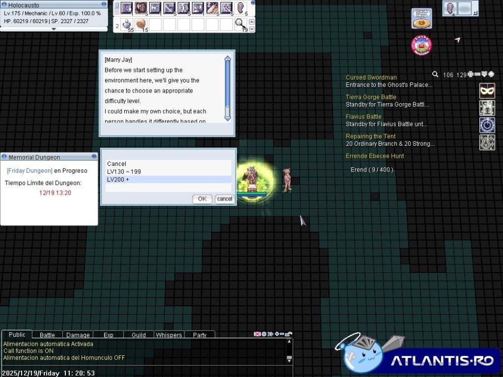2. No hay opcion para elegir la mob de lv 160, y si eligo la de mayor nivel no me deja porque dice que soy menor a 200. Ya intente con un pj lvl 150 tambien y solo deja la opcion de 130 ~ 199 y sale la mob lvl 100