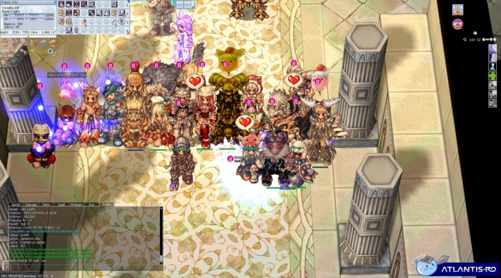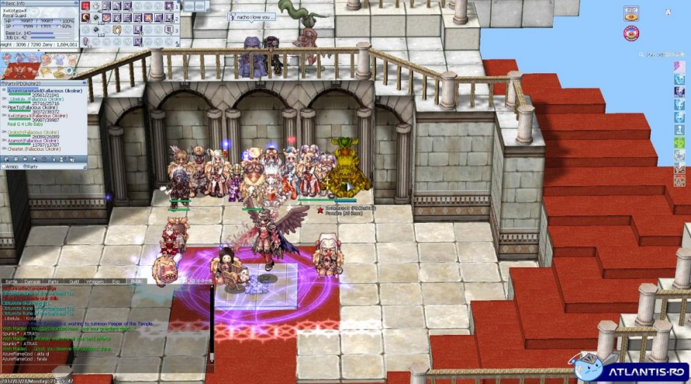 Estimados usuarios, habrá una desconexión para mantenimiento general y adicionalmente se aplicará un update grande. Importante: Será necesario descargar de manera manual el siguiente parche para poder ingresar al juego: Descarga del parche Mirror en Mediafire A continuación se resumen la lista de cambios: [Changelog De Fixes/Cambios] [Cambios en items] Se corrige un error en el item #14603 "Mistress Scroll", al usarlo permitía que ninguna skill consumiese gemas, la skill abracadabra siempre debe utilizar una Yellow Gemstone. Se corrige el efecto en el item #12750 "Battle Scroll"; estaba otorgando +5 atk y aplicando el efecto de una Berserk Potion perdiéndose el efecto al morir, cuando debería ser 5% de atk y aspd sin perder el efecto al morir. Se corrige un error en el item #1433 Imperial spear, que otorgaba un bonus de Matk Incorrecto. Se hace un ajuste a todas las Evil slayer weapons de la instancia Devil Tower, ahora son equipables por 2dos Jobs expanded (Super Novice Ex y Kagerou/Oboro) según sus requisitos normales. Se corrige el autocast de la skill Sactuary en el item #2990 "Pendant of harmony", se estaba lanzando sobre el agresor, ahora se ejecuta sobre el usuario que trae el item como debe ser. Se corrige un error en la descripción de la Fallen Bishop Card, ya que solamente afecta a ataques mágicos. Se Corrige un error en el item #5308 "Brazilian Flag Hat" su efecto NO debe sumarse a otros bonus de velocidad. -Aún no Aplicado, ver nota al final del tema para más detalles-. [Cambios en Npc] Npcs que invoquen mob mediante proximidad no se activaran si se esta con la skill Camouflage activa. Se actualiza el NPC Mayomayo en malangdo, se expande la lista de armas que puede encantar con su servicio. Se corrige un error en el NPC encargado de la Invocación de los MVPs en Tomb of Honor, ahora deberian invocarse de forma correcta. Se corrige un error con los Buff otorgados por el NPC Merry badger, que daban bonus de exp diferentes a los que deberian en base a los items que representan. [Cambios en Skills] Se corrige el reflect provocado por Inspiration; ahora no fuerza la animación de ataque de quien recibe el daño del Royal Guard. Se corrige la interacción de reflect y Kings Grace; ahora no refleja sin haber recibido daño alguno. Se corrige la skill Silent Breeze; estaba curando al Emperium cuando no debería. Se agregan 5 efectos de canciones faltantes a la lista de efectos que cancela la skill Howl Lion: Deep Sleep Lullaby, Circle of Nature, Lerad's Dew y Frigg's Song. (No hay evidencia que indique que cancela canciones de Bard/Dance ni Clown/Gypsy) Se corrige el funcionamiento de la skill FAW Magic Decoy, ahora lanzan los bolts elementales de manera correcta. Se corrige el funcionamiento de la skill Odin Power, no estaba reduciendo la def/mdef de manera correcta. [Cambios varios] Agregadas una gran cantidad de traducciones en descripciones de items By AnnoyingCat. Se remueven los Spawn naturales de Mini Boss en Tomb of Honor, ahora solamente haran respawn por invocación especial (tras cumplir el requisito de muertes) y al ser eliminados aportarán al conteo Global para la invocación de los MvPs. Se corrige un error en el NPC de la actividad Lava tus manos, ahora pide nivel 70 para realizar la actividad. Se realiza la Rotación de la Máquina expendedora de Prontera, los nuevos Huevos en ingresar son: Toy Box, Boys Selection I, Girls Selection III, Gothic II y Animals II. Para ver el contenido de los huevos de la maquina expendedora, ver el siguiente spoiler Se retiran los siguientes articulos de la Cash Shop: #17493 "Costume Wing" y #17589 "Costume Seaside II". Se agregan los items #17641 "Costume New Year II" y #17922 "Costume Frozen III" por tiempo limitado a la tienda de novedades. Vista previa de los costumes en el siguiente spoiler! Mas Información de su contenido en los siguientes enlaces: https://ragnarokonline.gungho.jp/news/information/costama-newyear2.html https://ragnarokonline.gungho.jp/news/information/costama-frozen3.html Nota Importante: A diferencia del los "Costume New Year II" Y "Costume Frozen III" Oficiales de Jro, en Atlantis RO todos los items tienen la misma posibilidad de salir (se elige uno totalmente al azar). [Changelog De Update] Se Agregan las Crimson Weapons, que son parte del contenido del episodio 15.2, más información en su respetivo tema en la wiki: https://www.atlantis-ro.com/wiki/index.php/Crimson_Weapons Se Actualiza el sistema de Bounty Boards agregando nuevas Misiones y cambios en sus recompensas (Exp y EMB) más información en el tema correspondiente en la Wiki: https://www.atlantis-ro.com/wiki/index.php/Bounty_Board_Quests Se Agrega el Pet Evolution System correspondiente al episodio 15.2, más información en su respectivo tema en la wiki: https://www.atlantis-ro.com/wiki/index.php/Pet_System Se implementa el aumento de limite de peso para recuperación natural de hp/sp, el Limite aumenta de 50% a un 70%. Se corrige el funcionamiento de los "Enriched" Oridecon y Elunium, antes funcionaban lanzando dos chances, ahora usar las probabilidades oficiales. Se Mejora la Interfaz grafica de la Cash Shop. Se agrega una mejora a la ventana de Guild ahora muestra la ultima fecha de login debajo del nombre del miembro. Se agrega la nueva interfaz grafica del Navigation System. Se Agrega la nueva interfaz grafica oficial de Refine. Se Agrega el Swap Equipment System, este permite cambiar tu equipo completo a un set de reserva utilizando un atajo del teclado. Se agrega la nueva interfaz grafica del RODEX System. Se agrega la nueva interfaz grafica del Quest Log. Se agrega la nueva interfaz grafica de Tip Box, (Traducción realizada por AnnoyingCat). Se agrega la nueva interfaz de usuario "Wear Costume" para previsualizar ingame la apariencia de un item costume sobre el personaje. Se Agrega la nueva interfaz grafica de la ventana de party, permitiendo crear mini ventanas como accesos rápidos a la hora de otorgar Buff a miembros de l