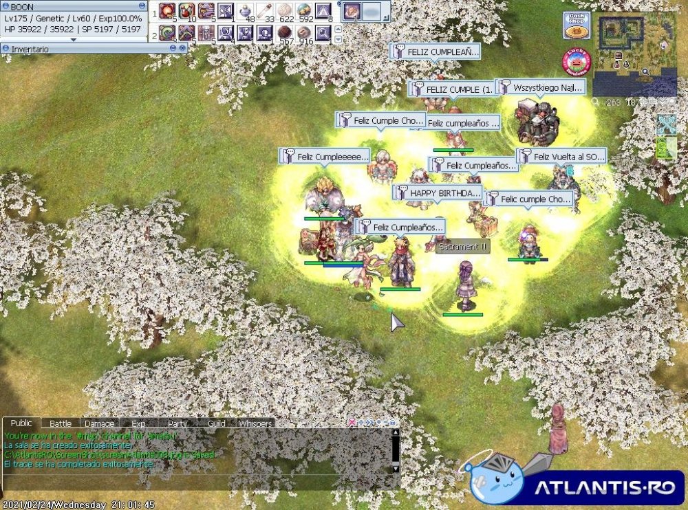 Hola Honny excelente día, me presento con usted: En el juego tengo varios personajes con el nombre de "BOON", me eh tomado el atrevimiento de dirigirme a usted por este medio para ver si existe la posibilidad de que pueda integrarme a esta respetable Guild ya que anhelo en crecer y conocer mas sobre el juego, cabe resaltar que actualmente tengo 2 personajes que son de otra Guild, pero va enfocada para WoE y me eh ganado amistad hacia mis compañeros y no se si sea impedimento para integrarme a su Guild. Mis aspiraciones en el juego es el deseo crecer y conocer a mas compañeros que les guste las actividades de PvM. Normalmente me conecto diario para buscar party's pero es algo difícil a que salgan, tengo disponibilidad de tiempo y cuando no me conecto es porque trabajo 2 o 3 días a la semana por trabajo y/o familia (Aviso con tiempo). Tengo hocusero y si se requieren mas requisitos para ingresar a su gremio estoy en la disponibilidad de aprender. Por mi parte es todo, me pongo a sus ordenes para cualquier cosa.
