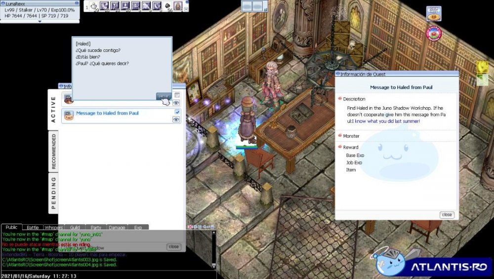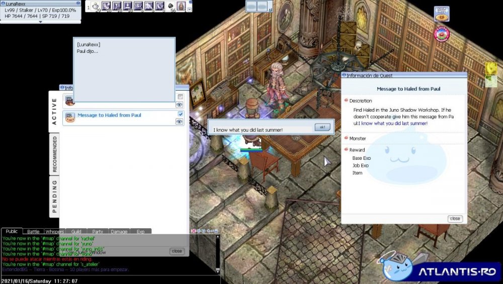 8. Hola, me encontraba haciendo por primera vez la quest para shadow chaser, y cuando tenemos que ir a Yuno con el Manager Haled a darle el mensaje "I know what you did last summer!", el npc simplemente me dice que no entiende y no me deja avanzar! ¿Que podría estar pasando? Ya lo escribí de varias maneras, incluso en español y nada! También he intentado con y sin el signo de exclamación "!" y también dejando un espacio después del signo pero nada me funciona, Ayuda!