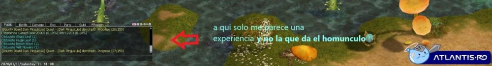 Hola a tod@s a ver si alguien me puede contestar a este problema : he tenido problemas con la tarjeta gráfica e ya lo he solucionado por mediación de lo explicado aquí : https://www.atlantis-ro.com/foro/topic/1224-error-con-gráfica-ati-atiumdagdll/ antes de este error en la ventana general me salia la exp que yo hacia y la del homunculo y ahora sin embargo solo me sale una experiencia la mía lo que hace el homunculo no parece y no se si me esta dando alguna o no aun que sea 0 de expe subo una imagen para ver si a si me explico mejor.