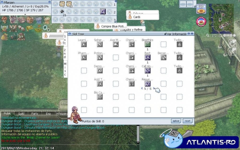 Acabo de hacer la quest de Bioethics con mi alquimista. Pero me creo que no asigna bien los puntos a las skills "Rest", "Call Homunculus" y "Resurrect Homunculus".