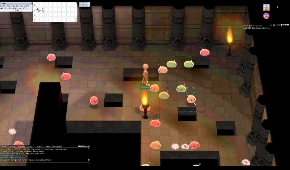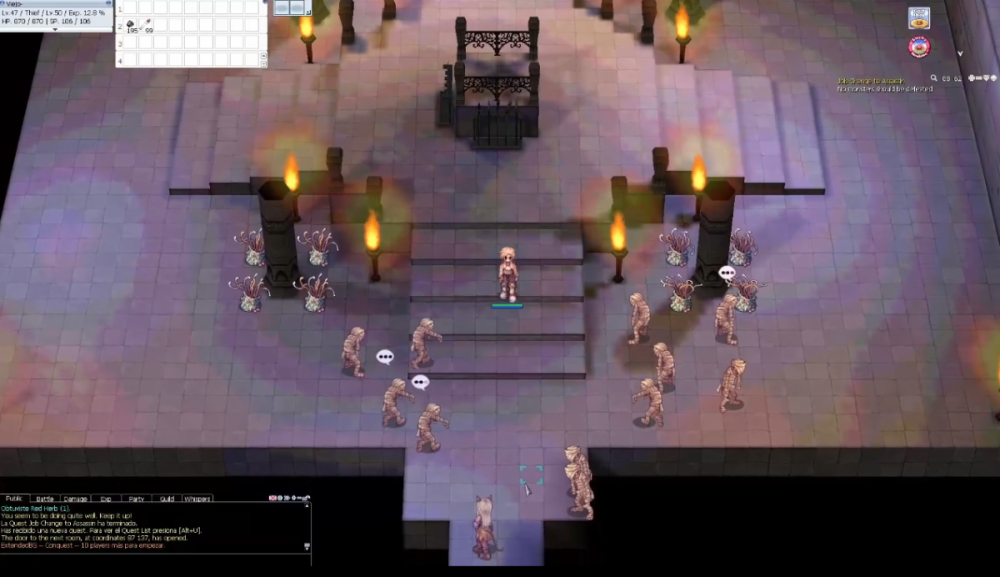 Hola a todos Don Viejito por acá y hoy les comparto otra guía de cambio de clase, en esta ocasión para el JOB de Monk, que puede ser tanto tank como atacante ofensivo, quizá un tanto difícil de masterizar pero sumamente entretenido, asique si te interesa este JOB quédate acá 😉. Para tener en consideración. Debes ser Acolyte con nivel de Job 40 como mínimo, se recomienda estar en nivel 50. Ten a mano consumibles de HP y SP, como alas de mosca. Lee bien la guía por que hay pasos IMPORTANTES. ------------------------------------------------------------------------------------------------------------------------------------------------------------------------------------------------------------------------------------------------------------------------- Para empezar con la quest debemos realizar un peregrinaje al monasterio de los Monk, Para ello debemos ir a la ciudad de Prontera y seguir los siguientes warps: uno a la derecha, uno hacia arriba y dos a la derecha, de esta manera llegaremos al monasterio donde podremos convertirnos en Monk. Entrando al monasterio nos encontraremos con el NPC Guarding Monk quien al pasar cerca de el nos retara diciendo que este sitio no es para jugar, ahí le indicamos que deseamos convertirnos en Monk por lo que cambiando de actitud nos manda a buscar al NPC Moohae para comenzar con nuestras pruebas. Para llegar al NPC debemos caminar por el sendero hasta llegar a un edifico grande, atravesaremos las habitaciones y al final de esta en una especie de altar se encontrara Moohae, quien al hablarle entenderá para que estamos ahí en el sitio y nos dará inmediatamente nuestra primera prueba para comenzar con la quest. Prueba de Recolección. La priemra prueba consiste en una de recolección de itmes, existen 7 set distintas que nos puede solicitar y debemos completarlos todos para terminar esta quest, los set son los siguientes: Set 1: Tooth of Bat x10 Bear's Footskin x10 Poison Spore x20 Set 2: Porcupine Quill x5 Cowweb x20 Grasshopper's Leg x10 Set 3: Stem x30 Jellopy x5 Worm Peeling x10 Set 4: Sticky Mucus x5 Earthworm Peeling x10 Green Herb x20 Set 5: Yoyo Tail x20 Iron Ore x5 Blue Herb x3 Set 6: Solid Shell x5 Shell x20 Zargon x5 Set 7: Cyfar x5 White Herb x10 Yellow Herb x10 Una ves entregado los items a Moohae este nos dirá que completamos la misión con éxito y nos enviara a buscar a la NPC Touha quien esta saliendo del edifico que estamos derecho en el cementerio y quien nos tomara nuestra segunda prueba. Prueba de Oratoria. La segunda prueba consiste en memorizar una oración que nos indicara la monja Touha, esta debe ser bien leída y luego repetida frase por frase según lo que ella nos recito, existen 3 oraciones distintas y estas son: Busco el camino de la iluminación nosotros los monjes permaneceremos verdaderos a lo que creemos y ayudaremos a proteger a los demás a través de las enseñanzas aprendidas durante nuestras vidas In nomine Patris, et Filii et Spiritus Sancti. Y pastores seremos para ti, mi señor, para ti. El camino del poder descendió de la mano para que nuestros pies puedan llevar a cabo rápidamente tu orden y fluirá un río hacia ti y rebosará de almas para siempre. In nomine Patris, et Filii et Spiritus Sancti. Me comprometo con la veritas y la aequitas seguiré mi camino hacia la iluminación y la pureza protegeré a mis hermanos con la vida el mal nunca triunfará mientras yo respire In nomine Patris, et Filii et Spiritus Sancti. Una vez aprobada esta misión Touha liberara el Ki latente en nuestro cuerpo antes de mandarnos a buscar al NPC Boohae para nuestra tercera misión la cual podremos elegir entre dos distintas. Misión a elección. La tercera misión que nos entregara Boohae podremos elegir entre una prueba de resistencia o una de recolección de materiales, ambas tiene el mismo sentido en general y que consiste en probar la paciencia y diligencia del acolito para convertirse en monk. Yo personalmente recomiendo la prueba de recolección que consiste en cosechar champiñones dentro del monasterio (30 hongos de cada tipo) ya que podemos llevar el control de este numero. De igual manera existe una prueba de resistencia que consiste en realizar una maratón durante un periodo de tiempo, solo es correr en círculos y es mucho mas monótona que la de recolección. Independiente de la elección que tomes en esta prueba Boohae nos envía a buscar al NPC Banshu quien nos trasladara a un mapa especial para realizar la prueba que seleccionamos anteriormente. En mi caso que realice la prueba de recolección me envió a un mapa igual al monasterio pero con los champiñones, y una vez termine la prueba hable con el NPC Hyunmo para salir de este mapa y terminar la misión. Luego debemos buscar al NPC Tomoon, al final del mismo edificio donde se encuentra Banshu para tomar nuestra cuarta prueba. Prueba de resistencia. la cuarta prueba consiste en pasar por un laberinto invisible y llegar a la meta, en este irán apareciendo monstruos agresivos que nos intentarán detener y hacer fallar la prueba, mantén tus consumibles a manos y una vez que llegues al extremo final los monstruos desaparecerán y Tomoon te recompensara con un GREEN POTION QUE NO TE TOMARAS YA QUE LA UTILIZARAS EN LA PARTE FINAL DE LA PRUEBA, si te tomas la poción o la pierdes deveras comprar una nueva y recuerda que el monasterio esta lejos. Finalmente nos enviaran nuevamente con Moohae para nuestra ultima prueba. Prueba Teórica. La ultima prueba consiste en responder una serie de preguntas que nos indicara Moohae y deben ser coherentes a lo que un monk respondería, en caso de que te equivoques en una el NPC te retara por fallar y deberás comenzar con las preguntas nuevamente, Cundo hables con Moohae te pedirá que te tomas la GREEN POTION DE LA MISION ANTERIOR Y SOLO ASI COMENZARAS CON LAS PREGUNTAS, las respuesta a esta son la siguientes: Dedicas lo que resta de tu vida para buscar la pureza, respuesta: Si. Tomaras ventaja de las habilidade