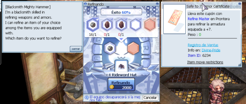 Si, dentro de una de las casas de prontera, hay creo que son 4 npcs para refinar, también está el que refina los rough oridecon y tal a lado, busque el que ponia que refinaba a +7 o superior, dado que el safe era de +7..
