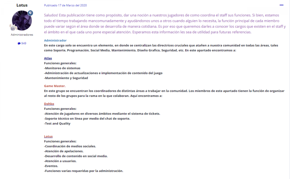 Lotus Publicado 17 de Julio del 2021 Share Publicado 17 de Julio del 2021 hace 22 minutos, HPsura dijo: yo no toque ningún tema o punto de woe, solo me sorprendió tu actitud ya que según dicen eres GM, cosa que da para pensar Bueno, pues te comento que en un foro se habla del tema en cuestión, y este es el tema de woe. hace 19 minutos, Dreyko X2 dijo: Pues la ultima vez que vi en el foro, entre tus labores (Obvimente con tu cuenta de GM), no vi que fueras influencer, comentarista deportiva o critica de WoE y si no tienes otra cuenta, puedes hacer te una para no estar mal interpretando "Tus Opiniones" con los comentarios de un GM Imparcial. Lo repito, no se me prohíbe dar mi opinión, por lo que, le busques por dónde quieras, no dejaré de darla, siento no sea de tu agrado pero eso no le impide dar mis impresiones sobre un tema, preocúpate si en base a ella tuviera que sancionar, ahí si estaría el problema, pero no... Solo opine, eso no mata a nadie. hace 16 minutos, Gennaro dijo: Nuestros "Pseudos ataques" del viernes pasado fueron entrar a la sala del empe y pegarle al cristalito hasta que nos mataron a todos. Crei que la woe era atacar ese cristal, pero parece que tampoco eso es jugar woe segun vos. La pregunta del millon es: ¿que debe o no hacer Grim Reaper para satisfacer a la GM Lotus para que NO sospeche de nuestras intenciones? Ah, te comento que la woe pasada la guild que defendia era Rena/Resi, y en ciertos pasajes de la woe CIERTA GUILD que no nombrare (porque a diferencia de vos no expongo gente sin pruebas) estaba atacando a Grim Reaper mientras nos preparabamos para atacar a Rena/Resi. Esa guild QUE NO NOMBRARE NO fue "RETADA" por vos al matar a una guild que no era la defensora. En otra woe pasada, GR atacó a una guild que NO DEFENDIA y empezaste a decir que les "defendiamos el castillo" a Rena. Quizas no viste esto, por eso hace tiempo te invite al DC de GR a que escuches TODA la woe mientras haces tu trabajo de arbitro y que VOS MISMA oigas en vivo las indicaciones que se dan mientras se juega. Si no queres aceptar la amable invitacion (que obviamente queda abierta para cualquier GM de atlantis) no es nuestro problema, como asi tampoco es nuestro problema que vos no puedas ver todo lo que pasa durante toda la woe en todo el castillo. Y antes de contestarme tené en cuenta que yo no hablo ni de tu inteligencia, ni de tu capacidad como GM ni de tu honestidad, no me hace falta chicanearte o hacerte menos para demostrarte absolutamente nada. Te repito, veni al DC y escucha todo, no tenemos nada que ocultar ? Y te juro que tengo muchísimas ganas de jugar, con quién me deje, hasta eso nunca en mis años de woe he sentido la necesidad de estar en el lado ganador, voy a woe por el mero gusto de participar. Deja ver si está semana puedo darme una escapada del trabajo, si la invitación sigue abierta te confirmo el jueves. @mori alokado para fortuna mía el buen dreyko cito aquí el listado de mi función, puedes acudir a ese mismo post y revisar quien es la persona encargada de esos reportes, si ocupas que te ayude a levantarlo avísame va? Pero como argumento para este tema, está muy gastado y es poco eficiente chiquillo. Saludos. Spoiler Enlace al comentario